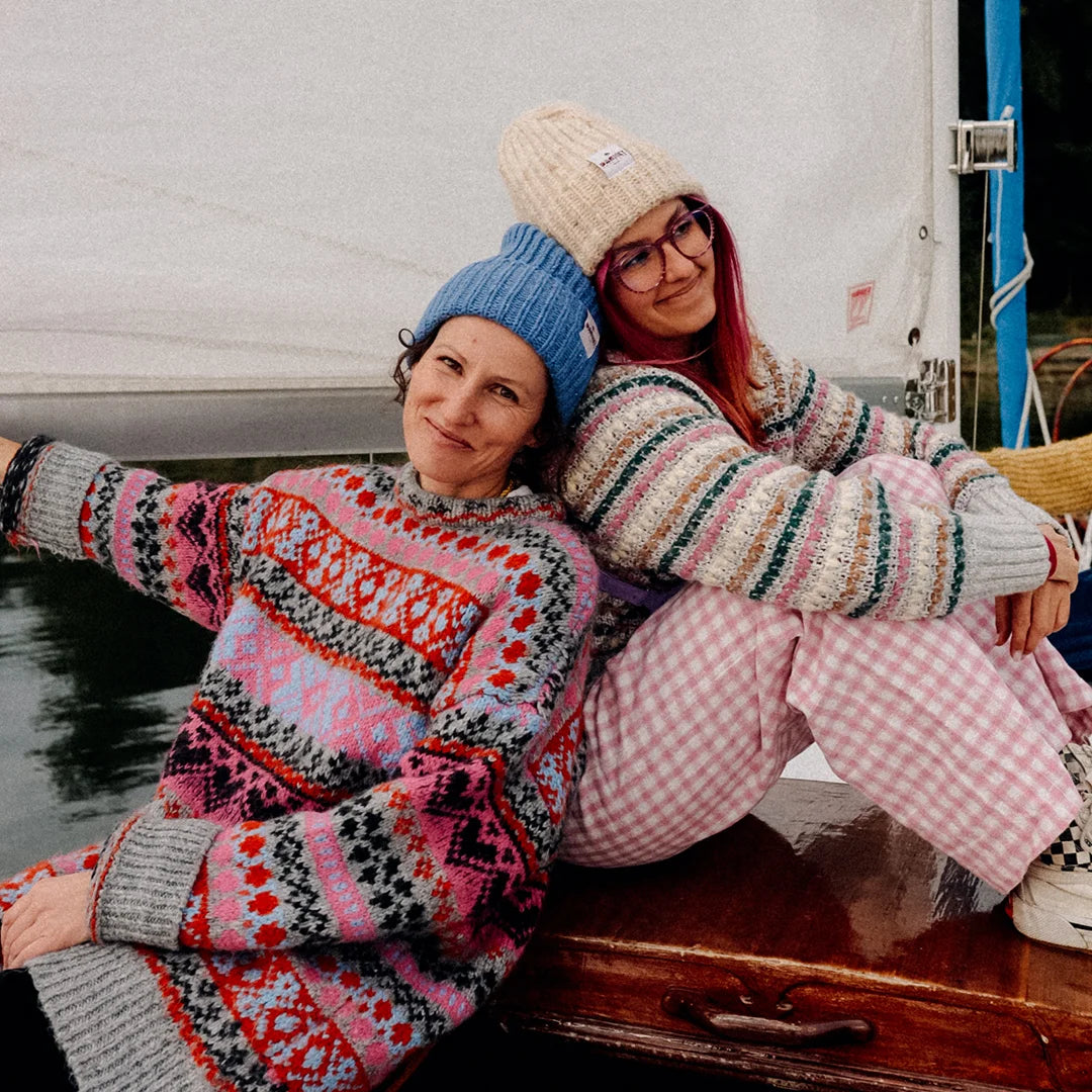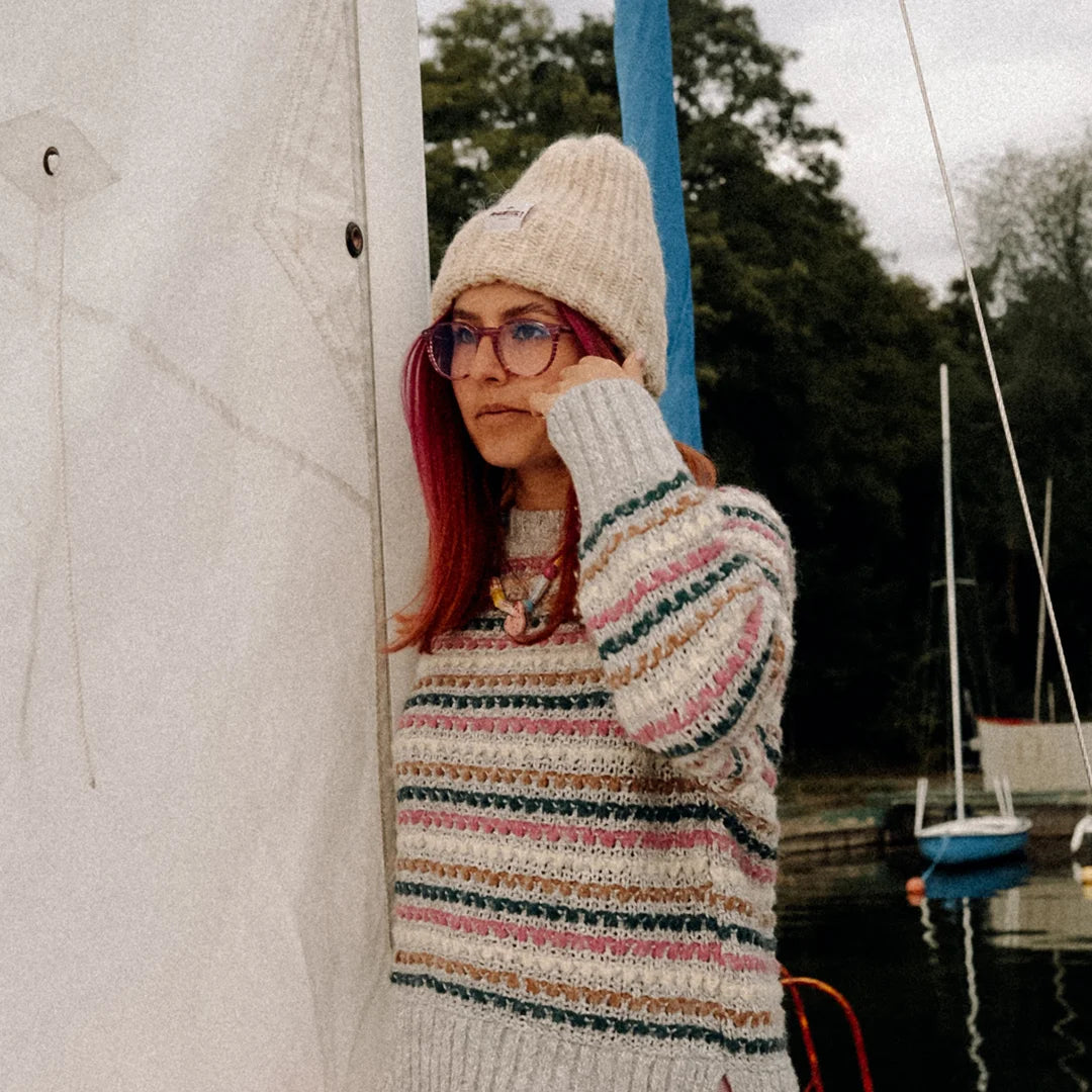 Wykonana z najlepszej przędzy – połączenia alpaki, jedwabiu i wełny – jest miękka, gruba i przyjemnie mięsista. Jej obfity, gęsty splot w kolorach szrości wygląda, jakby był utkany z czułości i troski. A gdy przyjrzysz się bliżej… zauważysz drobne, kolorowe niteczki, które subtelnie błyszczą w świetle niczym mini tęcza – trochę jakby wpleciono w nią odrobinę magii...