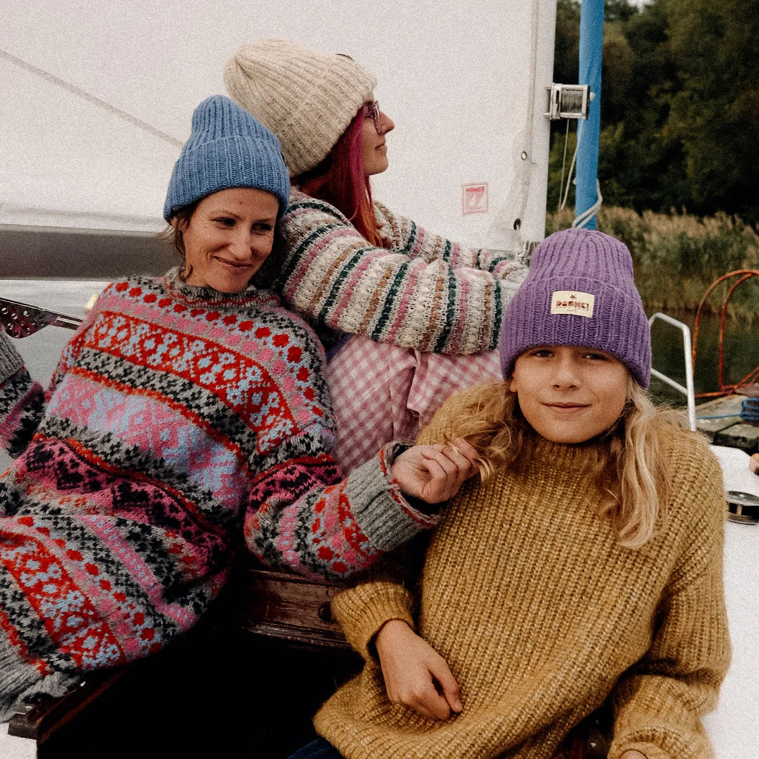 Czapka Woolly Hugs Blue – bo tak ją nazwaliśmy – otula głowę i sprawia, że każda stylówka wygląda genialnie.
