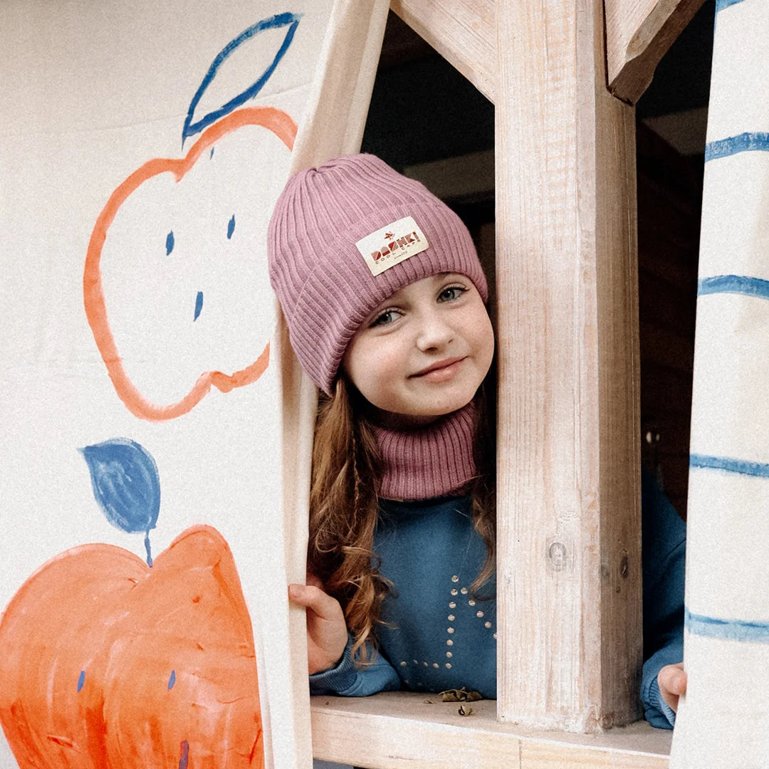 Komplet czapka + komin dla dzieci i młodzieży Merino Crew Heather Pink